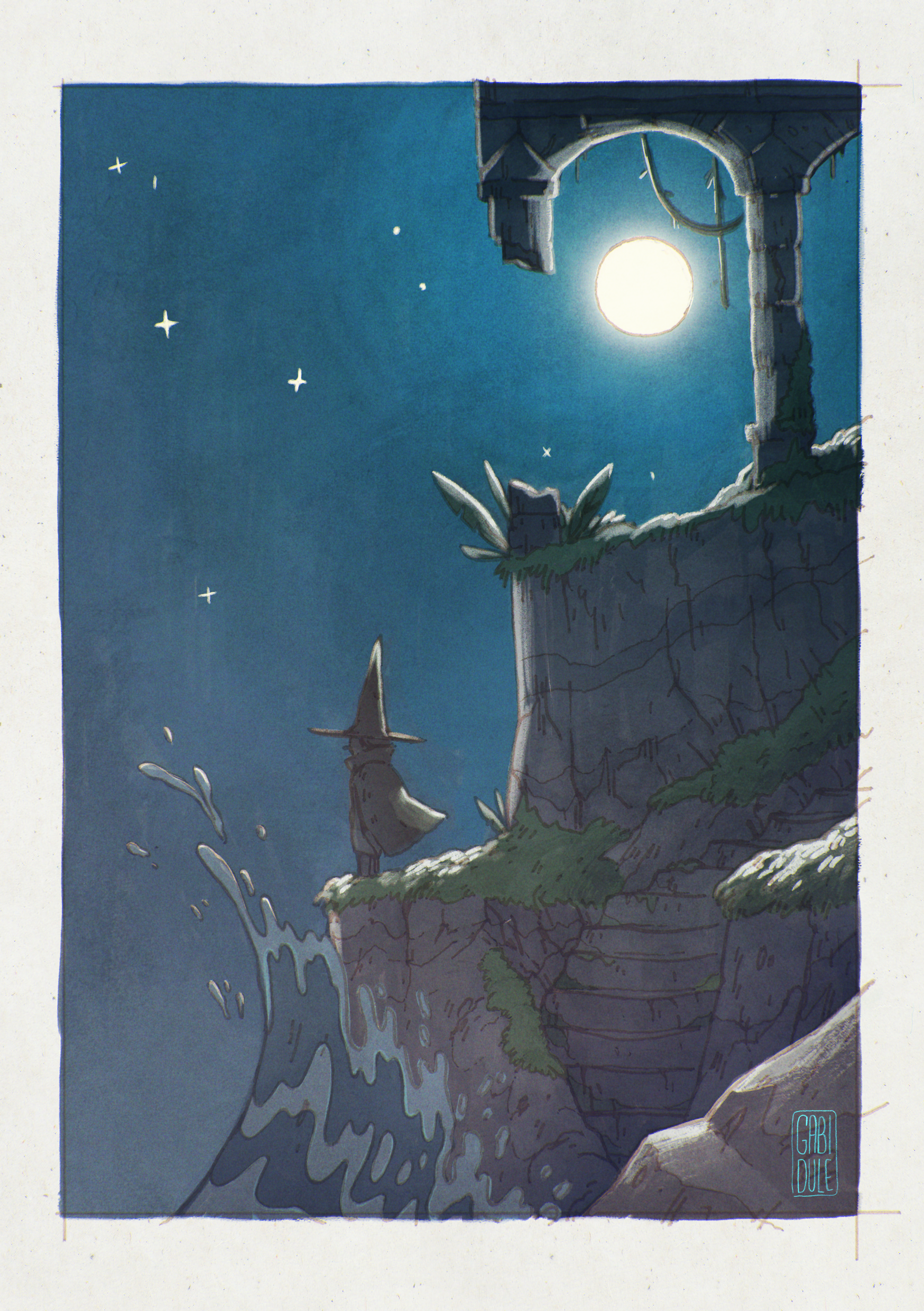 A moody wizard looking out at the sea - mixed media, 2020
